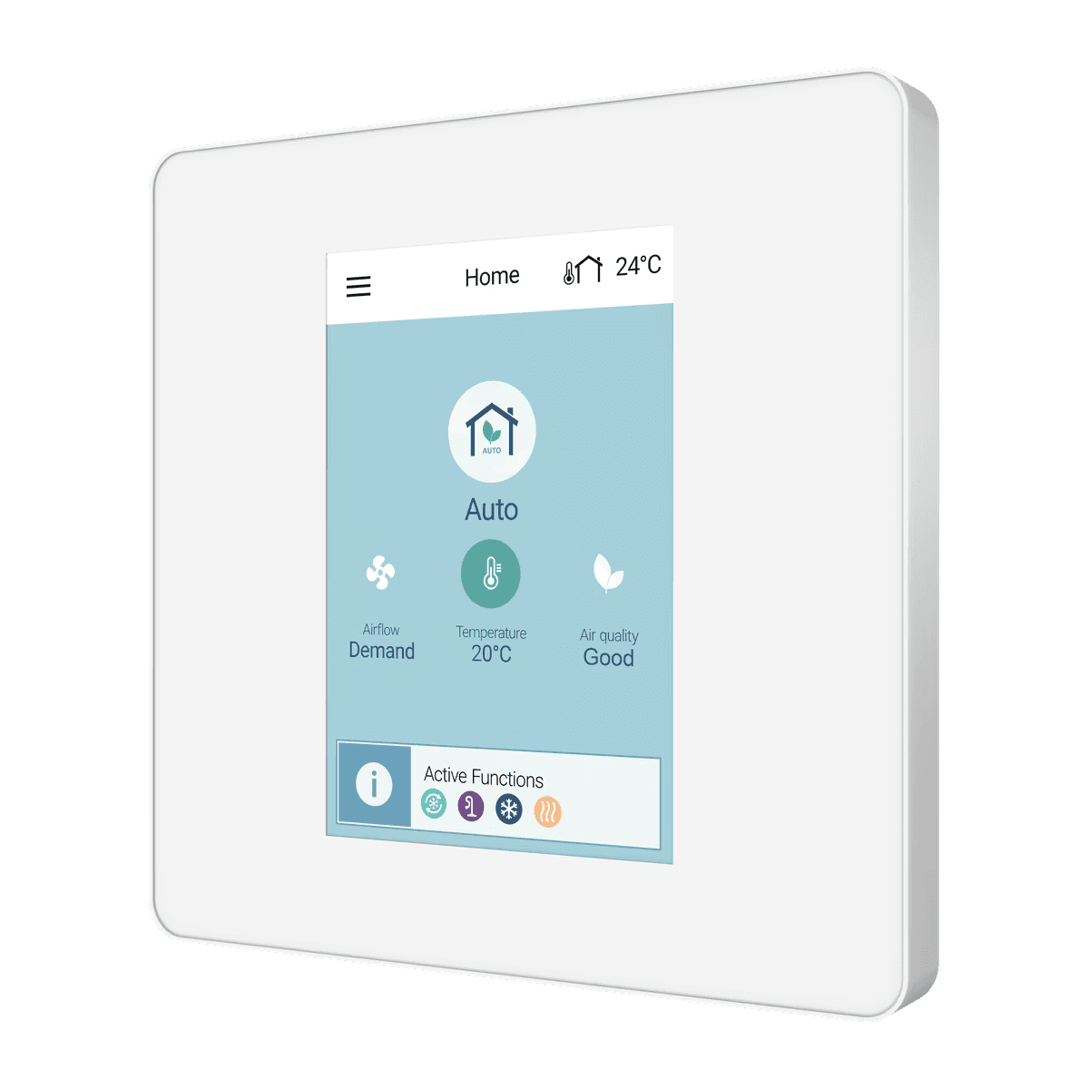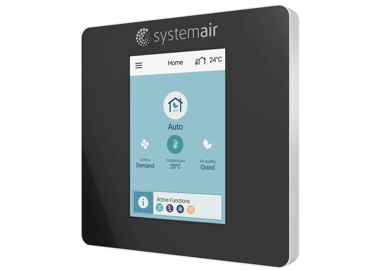 Spalvotas lietimui jautrus ekranas užtikrina lengvą navigaciją. Galite reguliuoti ventiliacijos spartą, nustatyti laikmačius, stebėti filtrų būklę ir keisti veikimo režimus. Kompaktiškas 87x87 mm dydis leidžia montuoti kaip įprastą jungiklį. Prieinamas juodos ir baltos spalvos.